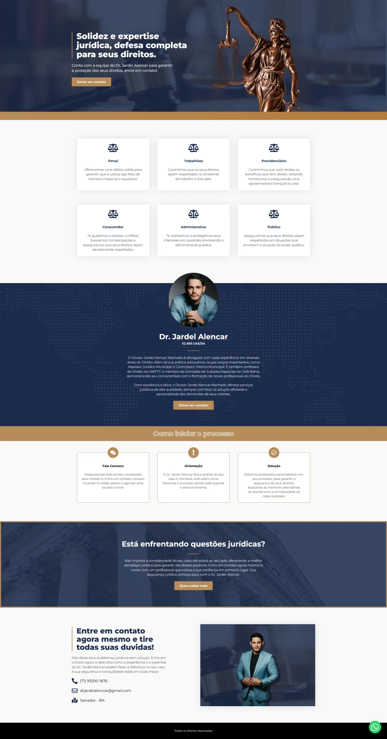 Especialista em desenvolvimento de sites para advogados, atuando também como closer, atendente comercial e responsável financeiro. Com atendimento consultivo e conhecimento técnico, entrego soluções digitais que transmitem autoridade, credibilidade e geram resultados reais para o seu escritório.
