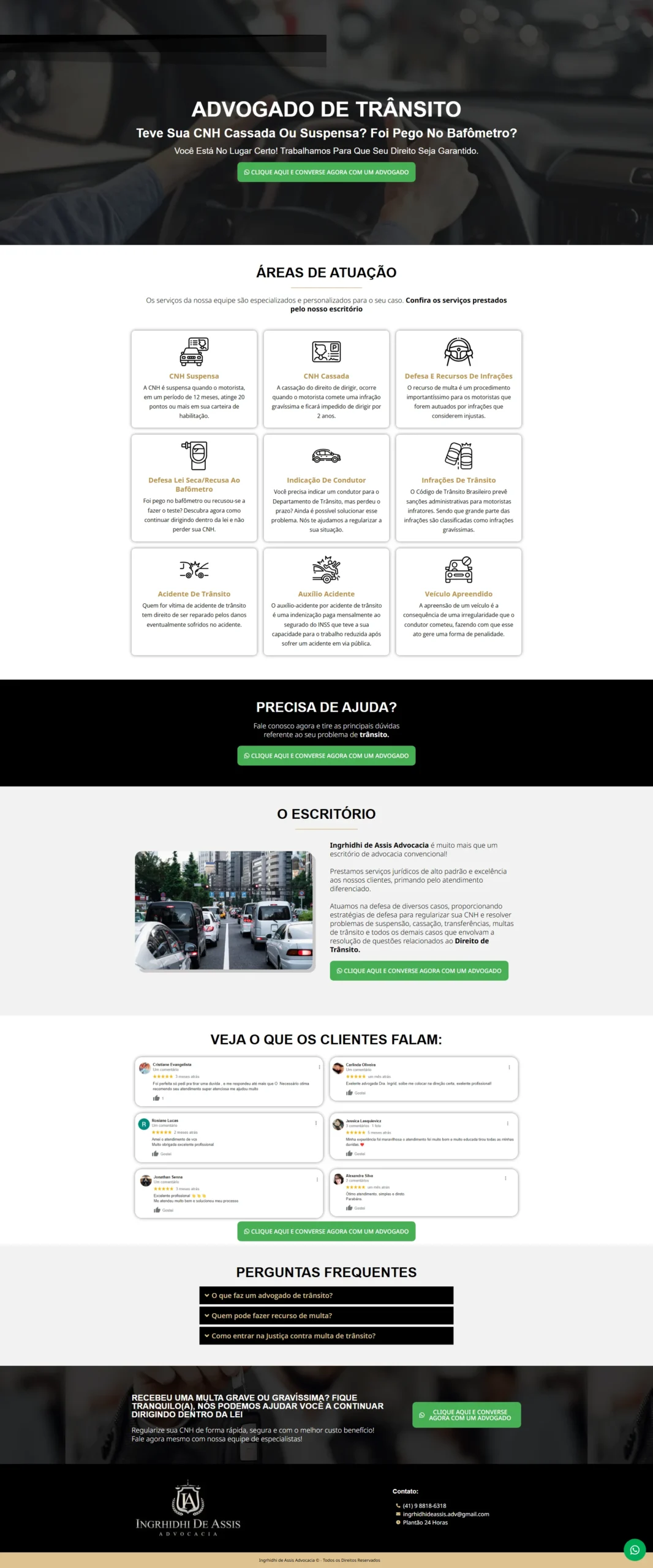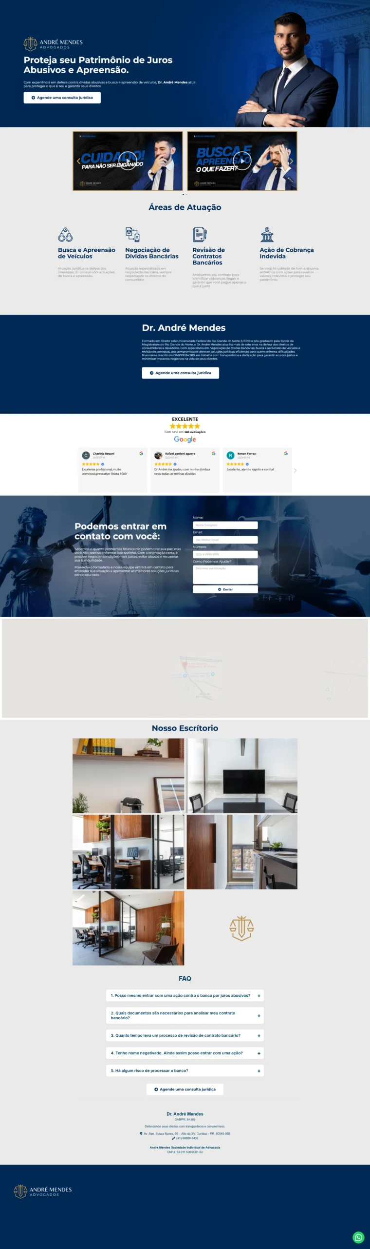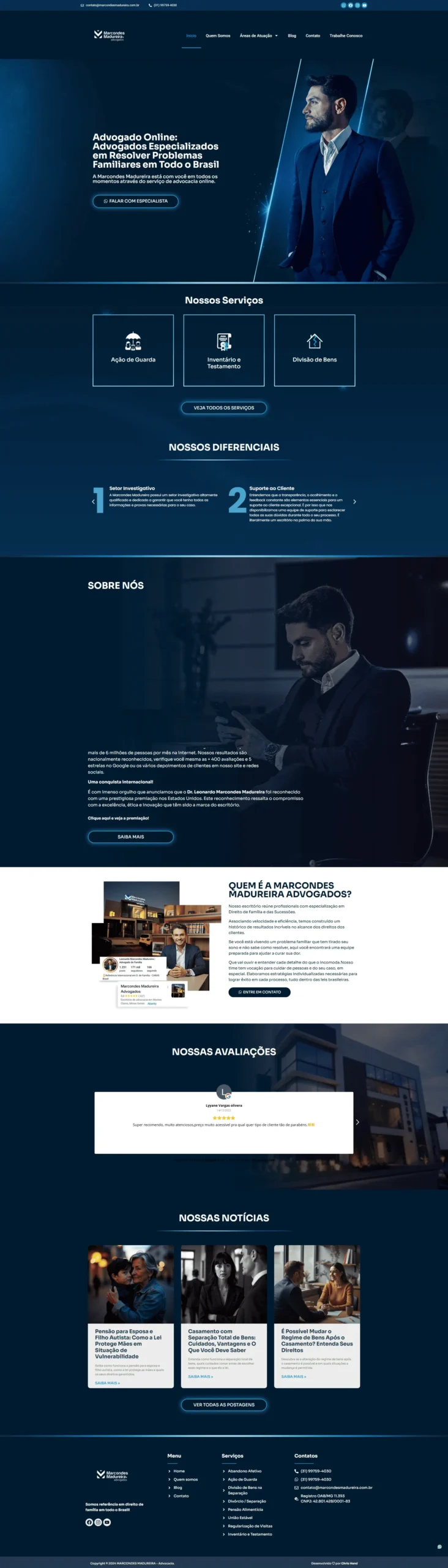 Seu site permite que potenciais clientes encontrem você no Google, aumenta sua autoridade no mercado e oferece um canal seguro e profissional para apresentar seus serviços, artigos jurídicos e formas de contato.